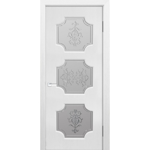 Дверь с ПВХ покрытием Эмма 40 ДО (Софт Белый, Гравировка)