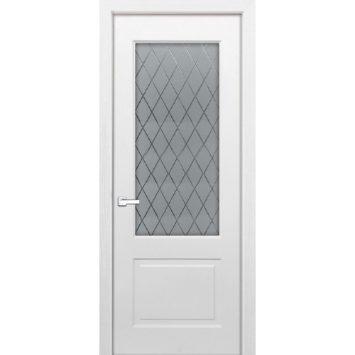 Дверь с ПВХ покрытием Эмма 55 ДО (Софт Белый, Гравировка)